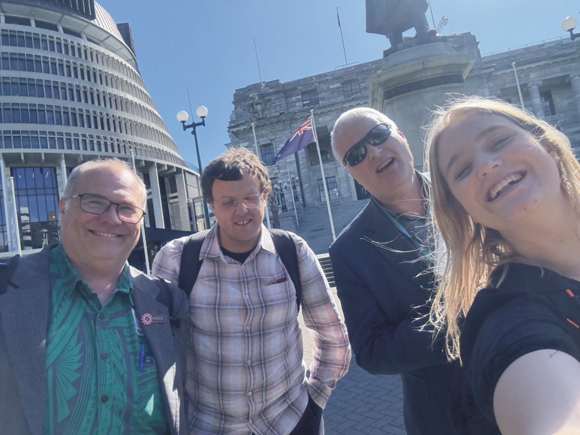 | Members of the New Zealand Space Weather Science Advice Panel (SWxSAP) Response Subgroup outside Parliament. This selfie was taken shortly after the ‘NEMA Science Advisory Panel Operational Readiness Forum (aka Training Day)’ . This was hosted in the National Crisis Management Centre (aka ‘the Bunker’) in Wellington. From left to right: Craig Rodger (Otago), Daniel Mac Manus (Otago), Andrew Renton (Transpower) and Louisa Prattley (NEMA). Louisa is the Executive Officer for the SWxSAP (15 October 2025). | ![]() |